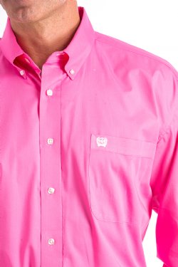 MEN'S SOLID BUTTON-DOWN WESTERN SHIRT - PINK