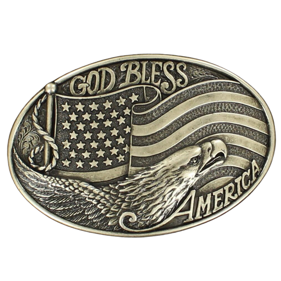 NOCONA OVAL GOD BLESS AMERICA BELT BUCKLE