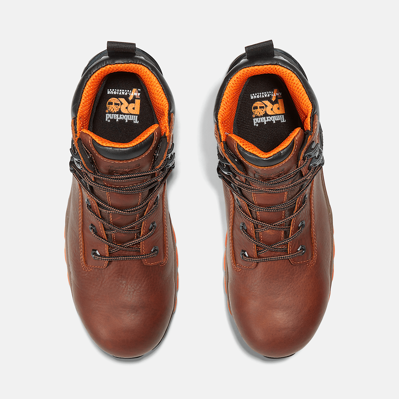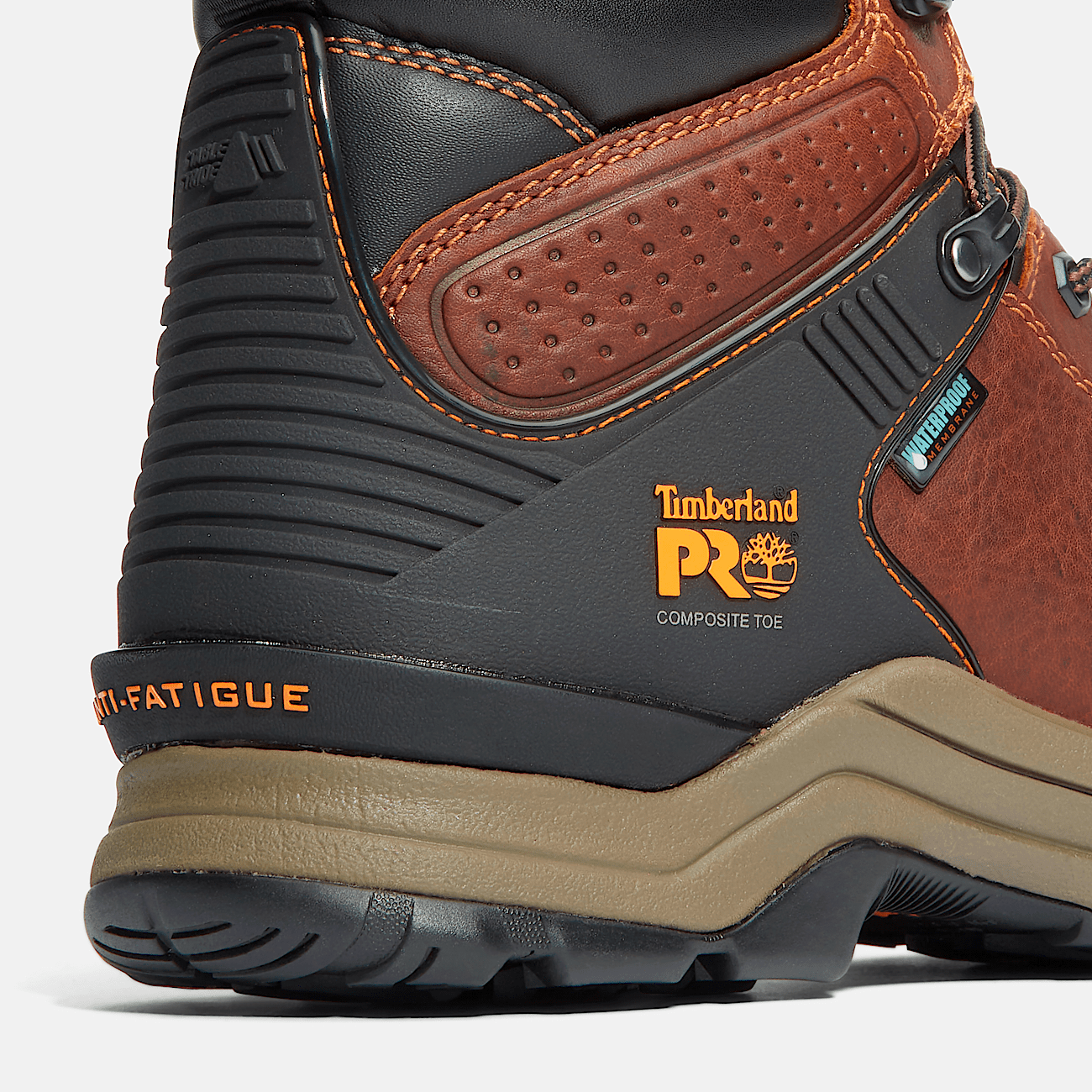 Timberland men’s field-tested Hypercharge waterproof work boots are built for agility, comfort, and protection, so you can perform to your highest level without worrying about your feet. Performance features for these composite safety-toe boots include Premium Timberland® waterproof leather uppers, internal waterproof membranes for maximum waterproof protection and blood-borne pathogen resistance, Stable Stride™ Technology to help reduce ankle rolling, slipping, and injury on slanted/uneven surfaces, and Anti-Fatigue Technology for all-day shock absorption and energy return. Plus, our exclusive Independent Suspension Network™ (ISN™) system for superior control, support, and agility and heat-, oil-, slip-, and abrasion-resistant, non-marking rubber outsoles with Ladder Lock™ heels that help grip ladder rungs.