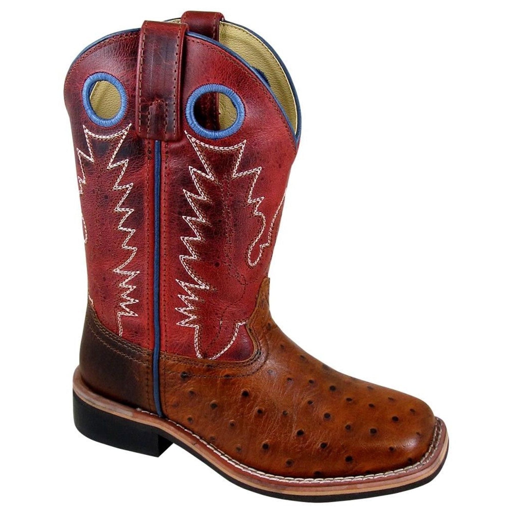 Lookin' good little buckaroo!! These boy's western Cheyenne boots from Smoky Mountain Boots feature pull on tabs, block heel, rubber outsole, square toe and man made lining.
