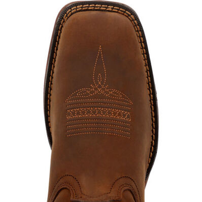 Whether you're moseying around on the farm, running errands or going out on a date, you'll want to pull on these Rebel™ by Durango® square-toe Western boots. Its distressed-looking upper has been crafted from brown full-grain leather.