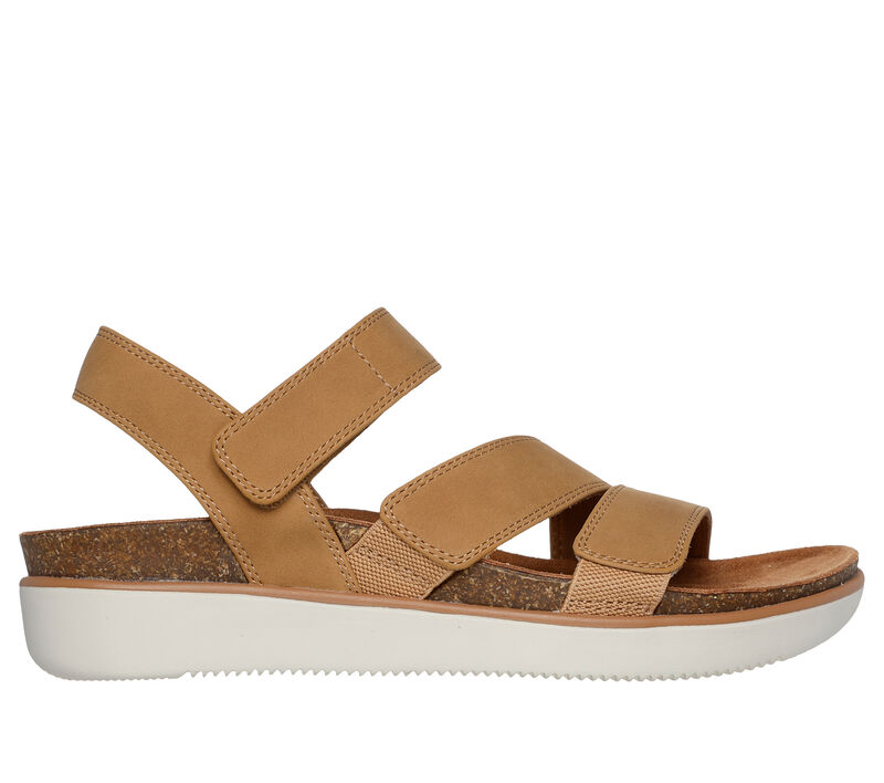 Bring sensibly modern design to your warm weather look wearing Skechers Lifted Comfort. Available in a variety of colors, this vegan sandal features three adjustable faux leather straps with a cork-trimmed Skechers Memory Foam™ footbed.