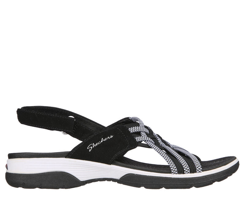 Be cool, easy and comfortable wearing Skechers Arch Fit® Reggae Sport - Hometown. This modern comfort sandal features a strappy stretch fabric upper with an adjustable sling-back strap closure and a supportive Arch Fit® contoured footbed.
