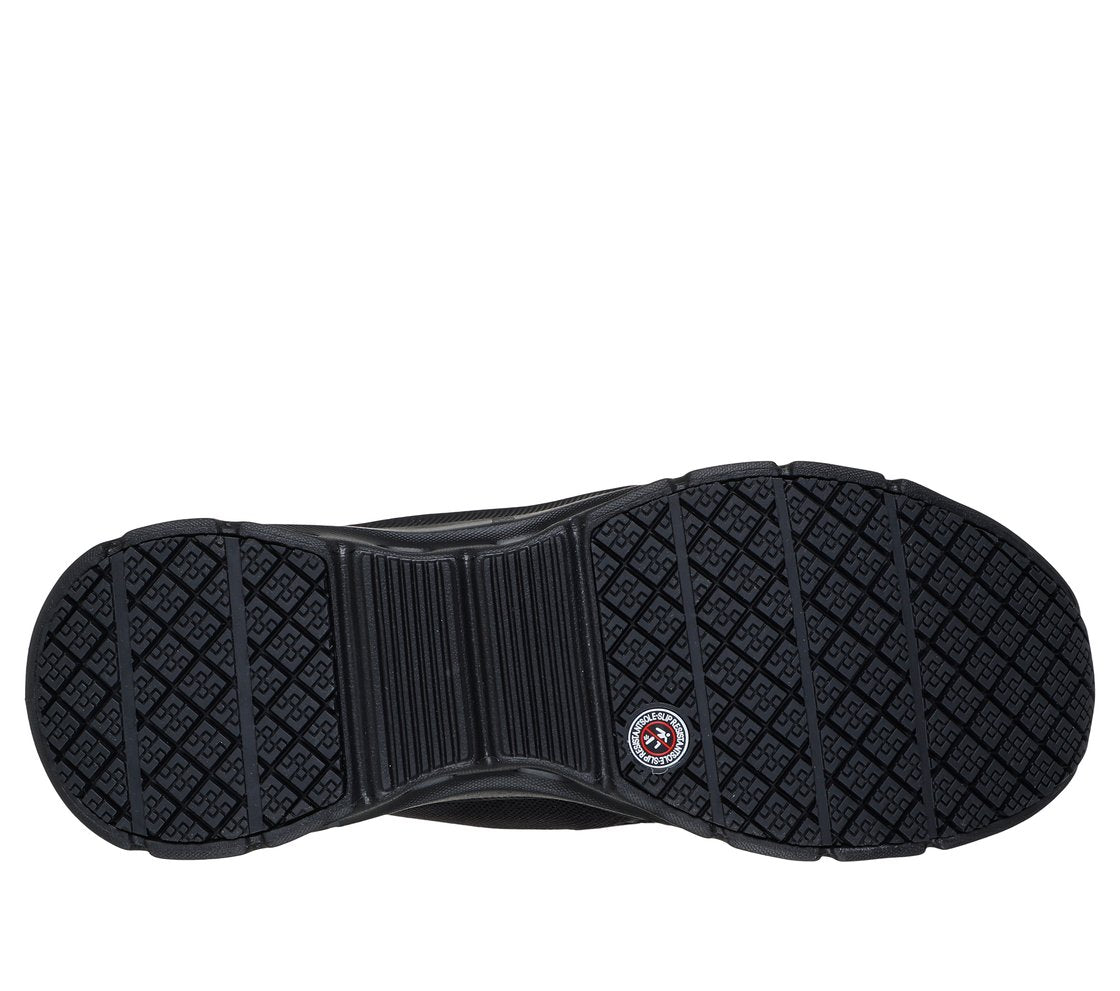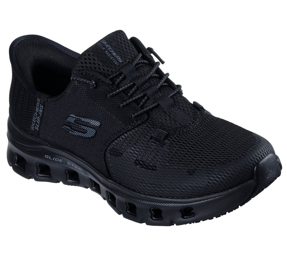 Experience slip-resistant safety with slip-on convenience wearing Skechers Hands Free Slip-ins® Work™: Glide-Step Pro - Edura. Featuring a water-repellent mesh and synthetic upper with a unique Skechers Slip-ins® molded heel panel, stretch laces, an Heel Pillow®, Glide-Step® geometric cushioned midsole, slip-resistant outsole, and a Skechers Air-Cooled Memory Foam® cushioned comfort insole.