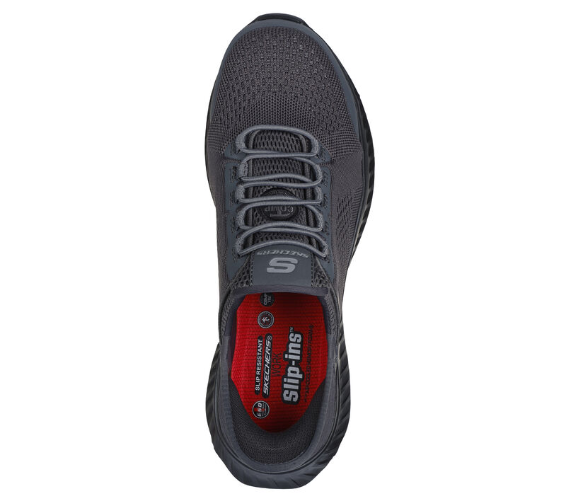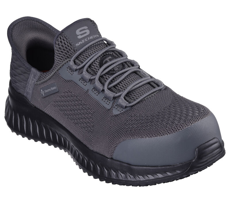 Take the easiest route to protection, comfort and style with Skechers Hands Free Slip-ins® Work™: Tilido. Designed with our exclusive Heel Pillow™, this sporty slip-on work design features an engineered knit and synthetic upper with stretch laces, a composite safety toe, slip-resistant outsole, and a cushioned Skechers Air-Cooled Memory Foam® insole.