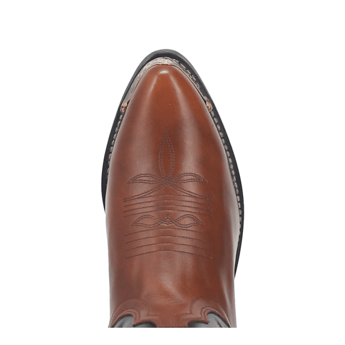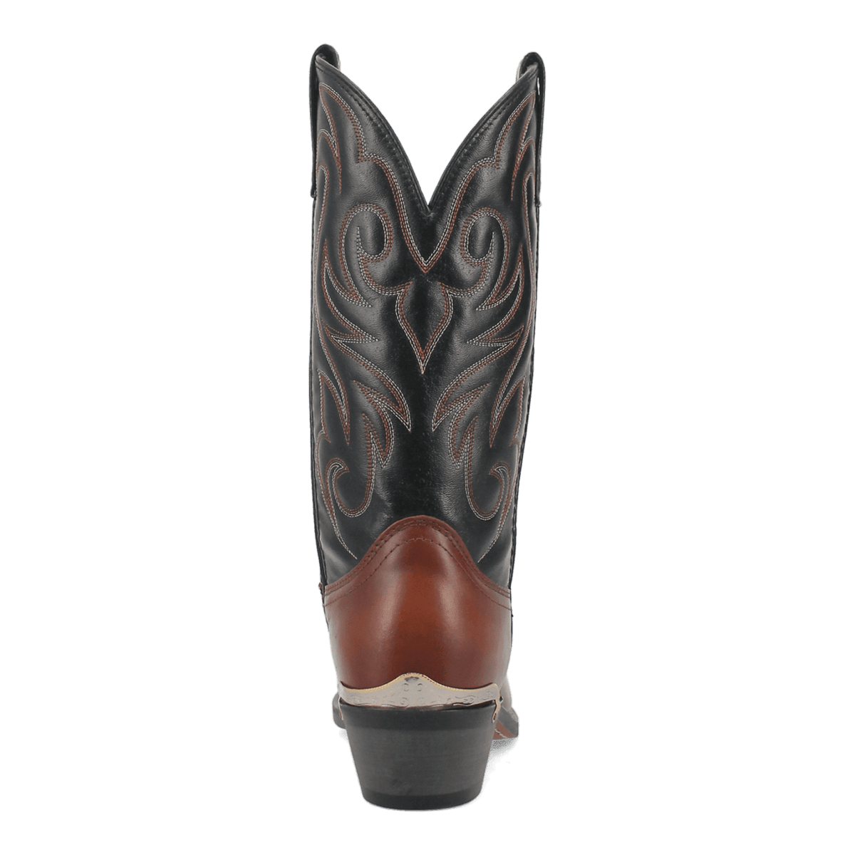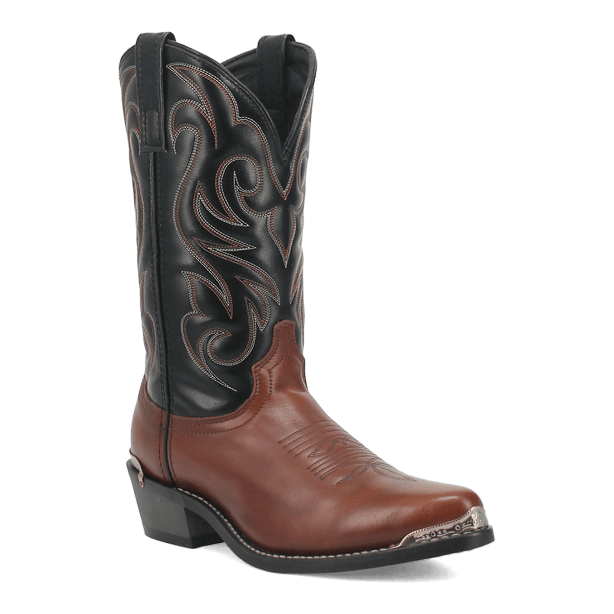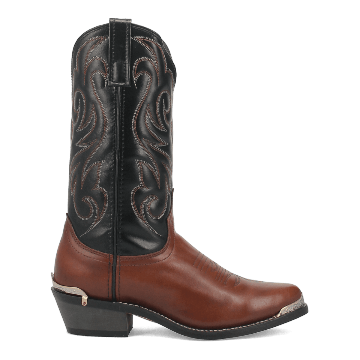 Step up your style with the Nashville boot. This two-toned looker is made with a peanut crunch leather foot. Complete with a black leather-like shaft that's detailed in traditional western stitching and a silver toe and heel rand. Also comes with a Comfort Cushion insole.
