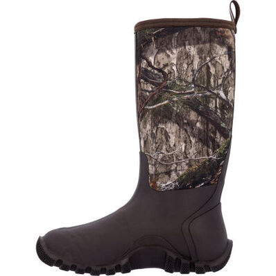 The Fieldblazer is the finest waterproof sport boot in its class. Its waterproof construction keeps feet dry while out in the field, and the classic Fieldblazer construction offers the fit and performance hunters have come to love. The Mossy Oak® Country DNA™ camouflage pattern provides concealment, while, for additional safety, roll-down hi-vis Blaze Orange linings provide visibility while traversing the woods. The quadruple heel, triple toe and double instep rubber add protection and durability. It also has Achilles reinforcement and a high-traction waffle sole that grips on slick surfaces. The original and best is back.