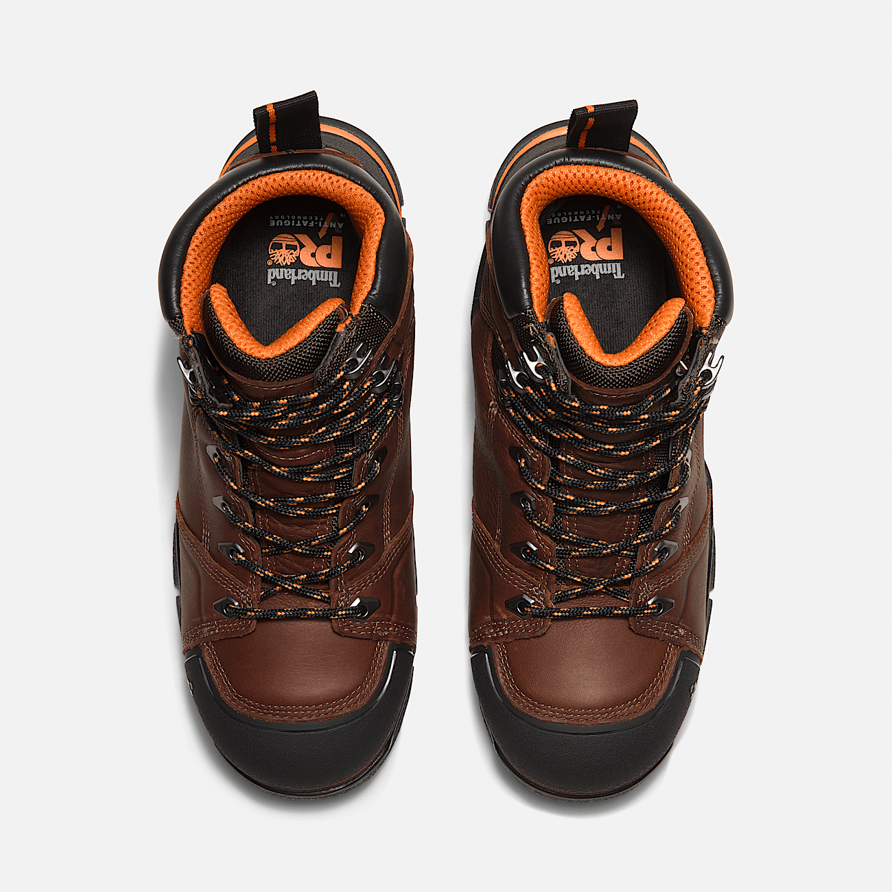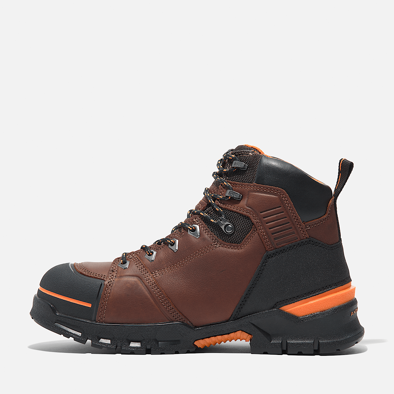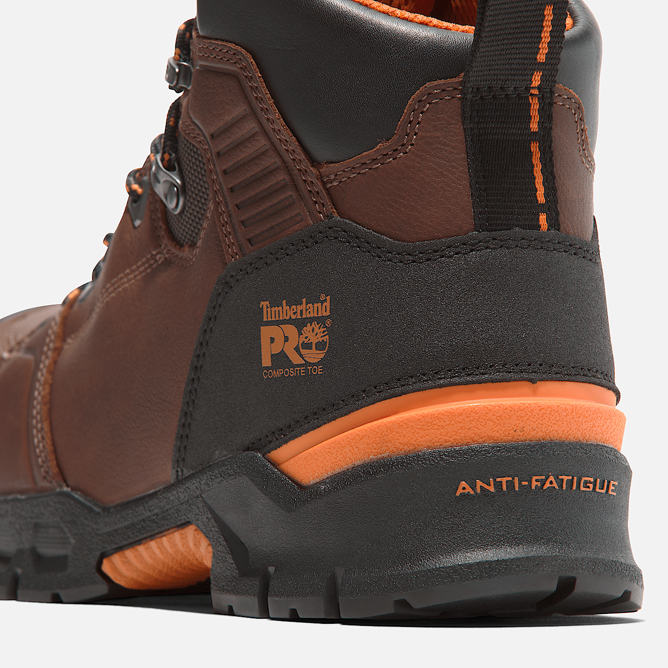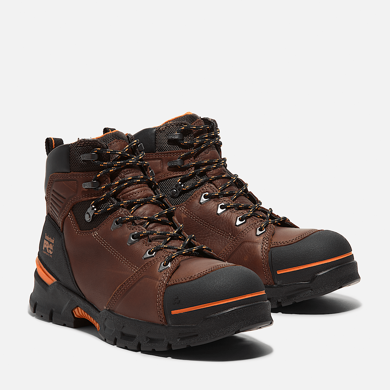 We didn't just choose the name Timberland PRO® Endurance for these work boots. They earned it. Our latest edition to this iconic line has been updated with new materials and a sleek design, built for the long haul with performance, protection, and comfort features you can depend on to get you through challenging days on the job. You'll appreciate their premium Timberland® full-grain waterproof leather uppers, now with molded TPU and highly abrasion-resistant Ever-Guard™ leather reinforcements for extra durability. We also added composite safety toes, internal Anti-Fatigue Technology polyurethane midsoles for shock absorption and energy return, and breathable, moisture-wicking linings made of ReBOTL™ fabric containing at least 50% recycled plastic with an antimicrobial treatment for odor control. Plus, underneath you'll find our heat-, oil-, slip-, and abrasion-resistant, non-marking Timberland PRO® rubber outsoles for superior traction with Ladder Lock™ heels that help grip ladder rungs.